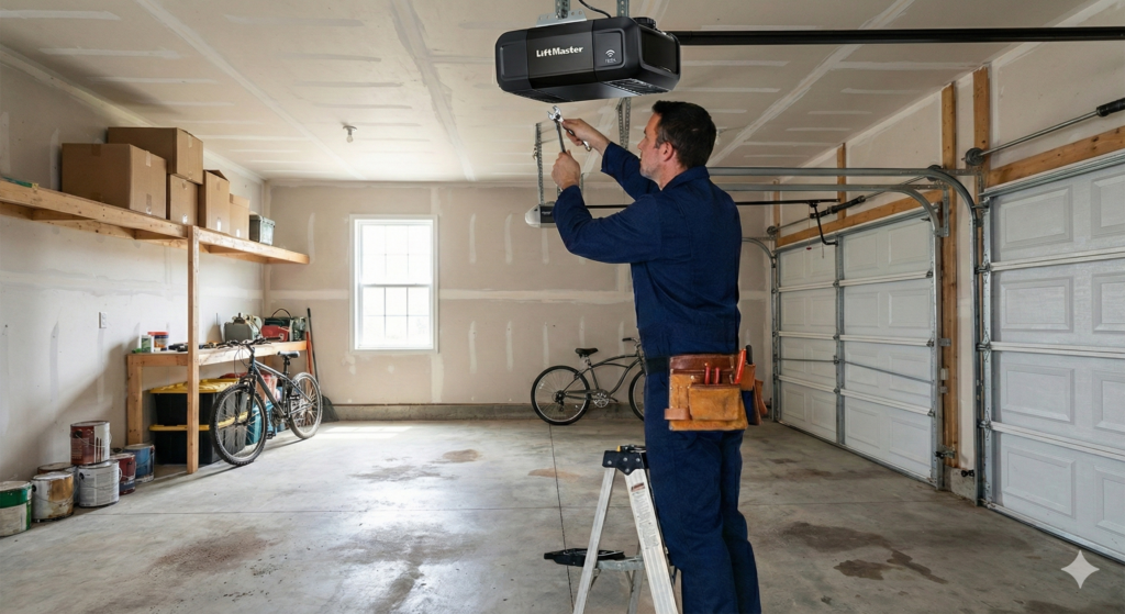 For shift workers, we almost exclusively recommend Belt-Drive Openers (like the LiftMaster 87504). Instead of a metal chain, they use a steel-reinforced rubber belt. They are whisper-quiet and virtually vibration-free.